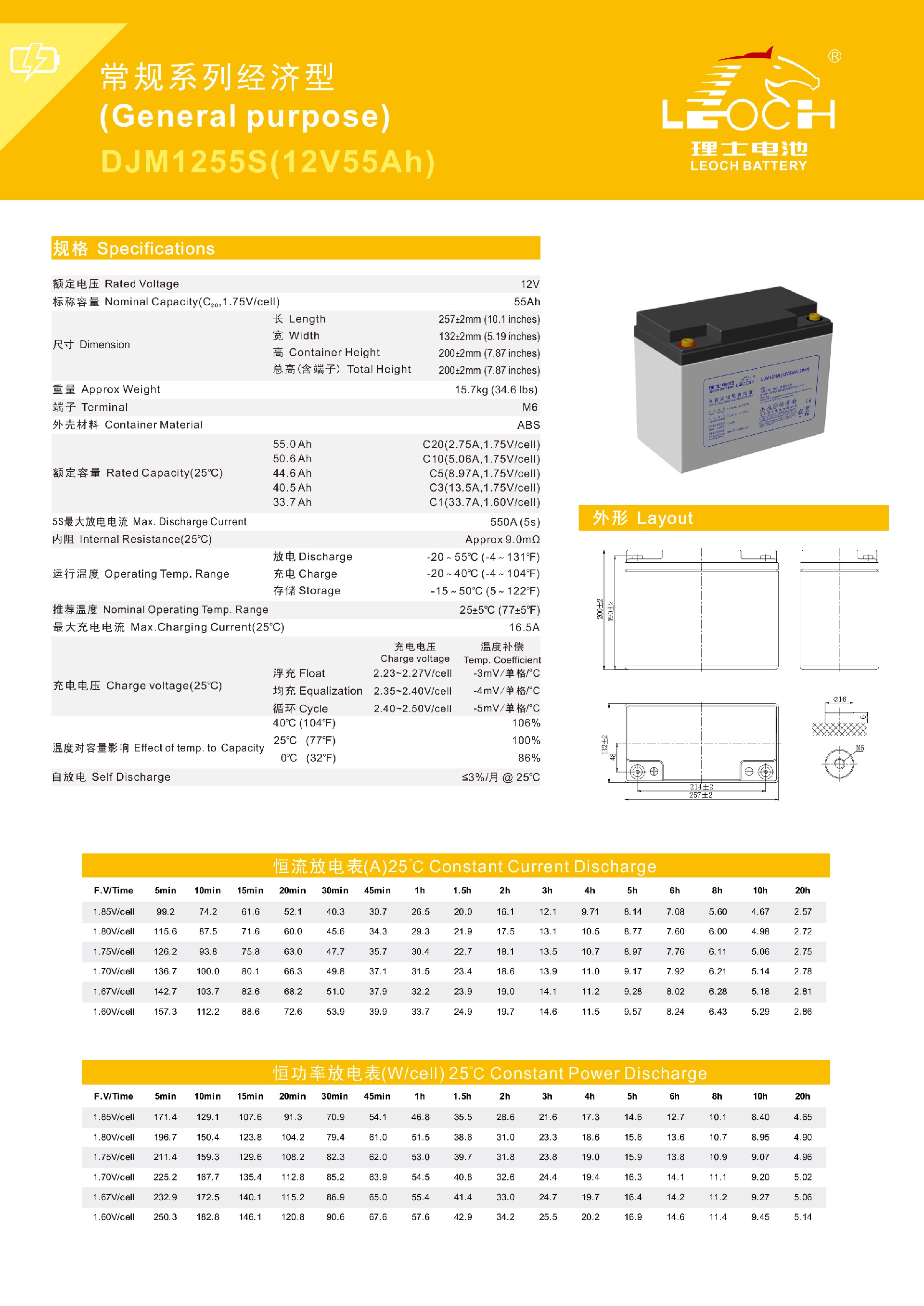 25℃下,设计浮充寿命可达12年。自放电率极低;使用范围宽;密封性能好,导电性好;充电接受能力强;安全可靠的防爆排气系统。符合IEC60896,YD/T799标准。UL认证