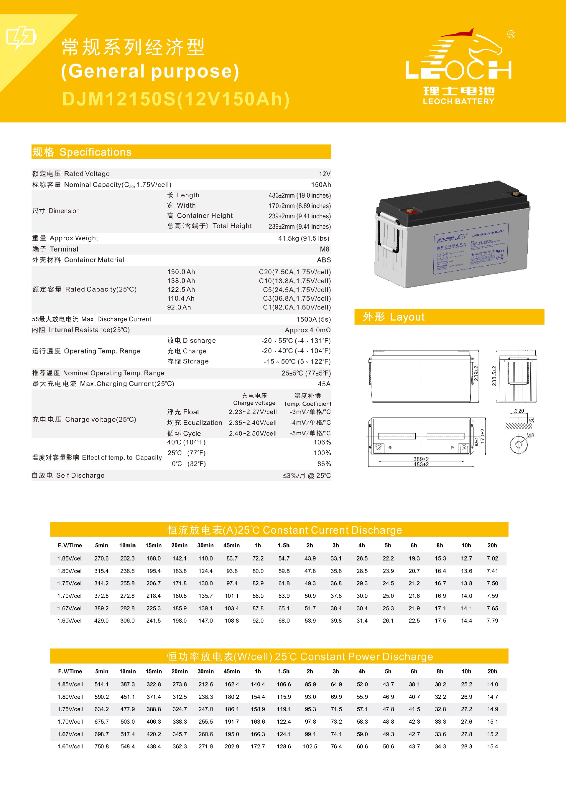 25℃下,设计浮充寿命可达12年。自放电率极低;使用范围宽;密封性能好,导电性好;充电接受能力强;安全可靠的防爆排气系统。符合IEC60896,YD/T799标准。UL认证