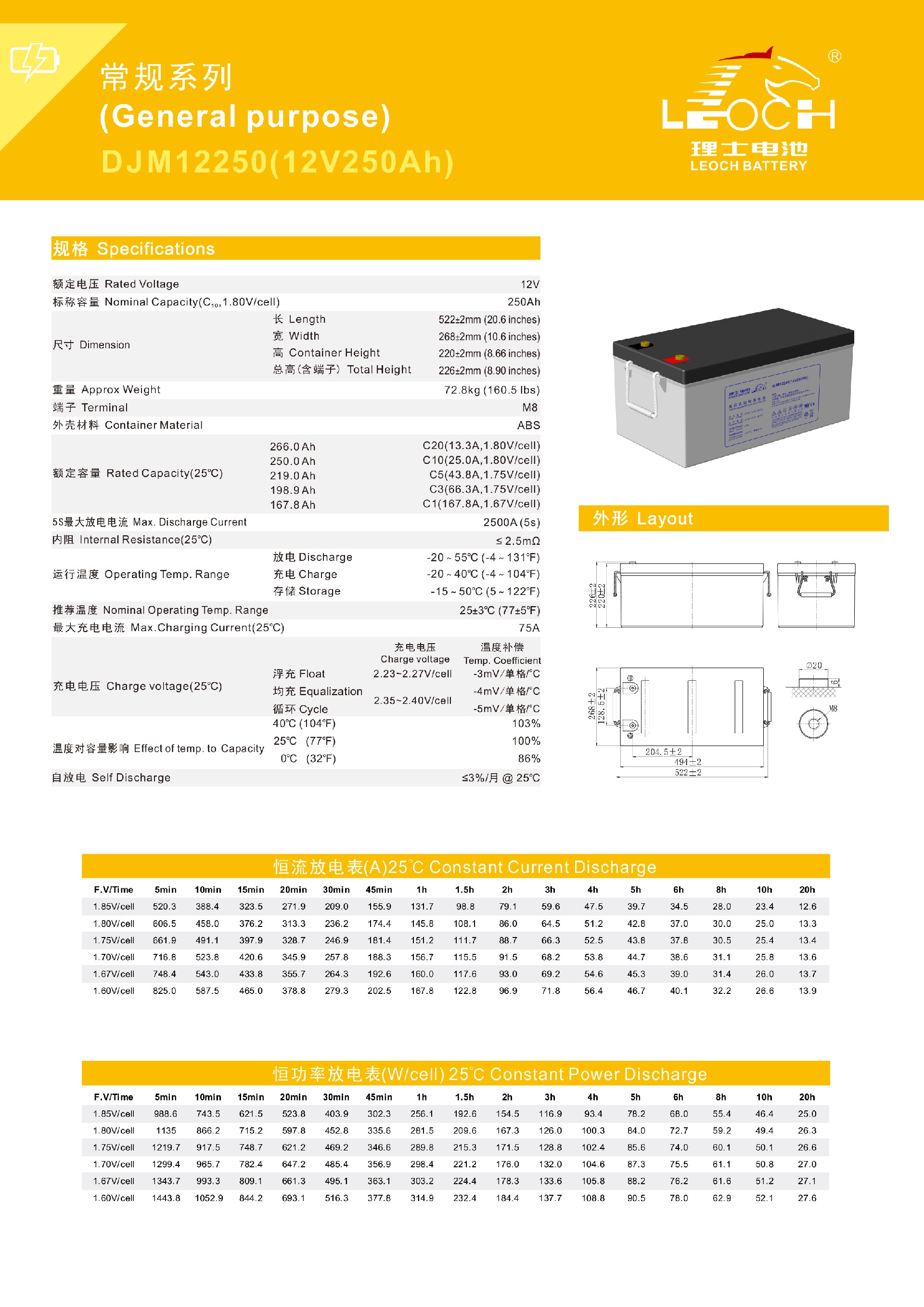 理士蓄电池DJM12V250AH