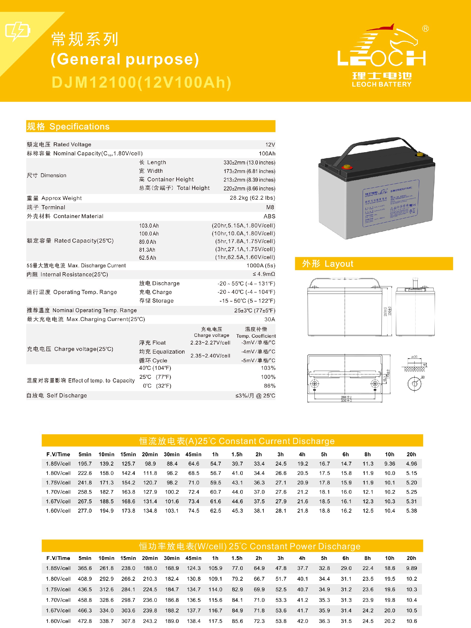 25℃下,设计浮充寿命可达12年。特殊的排气结构和密封技术,使用安全可靠,安装灵活,维护便捷。符合IEC60896,GB/T19638,YD/T799和DL/T637标准。UL认证,泰尔认证,CE认证