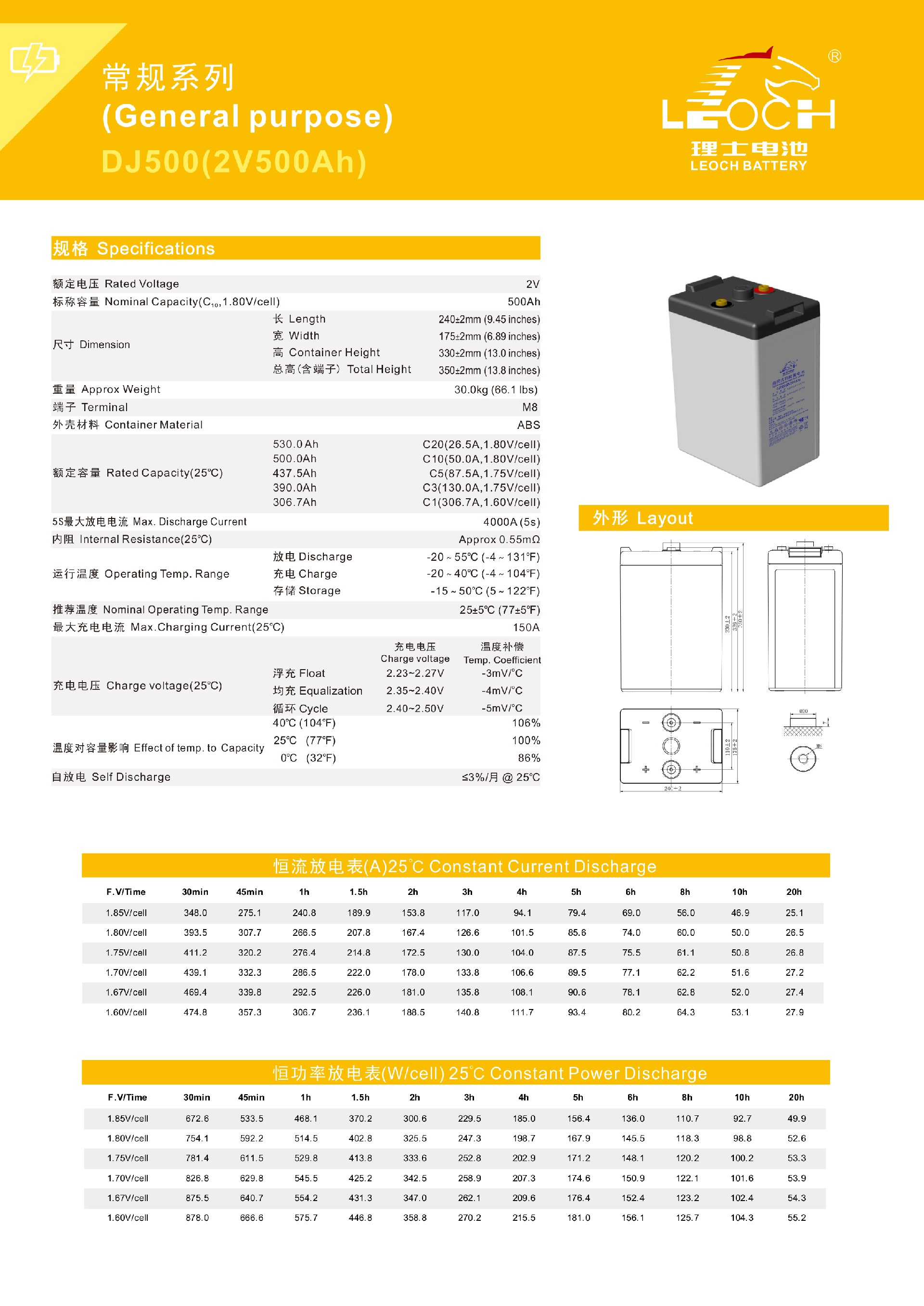 理士蓄电池DJ2V500AH