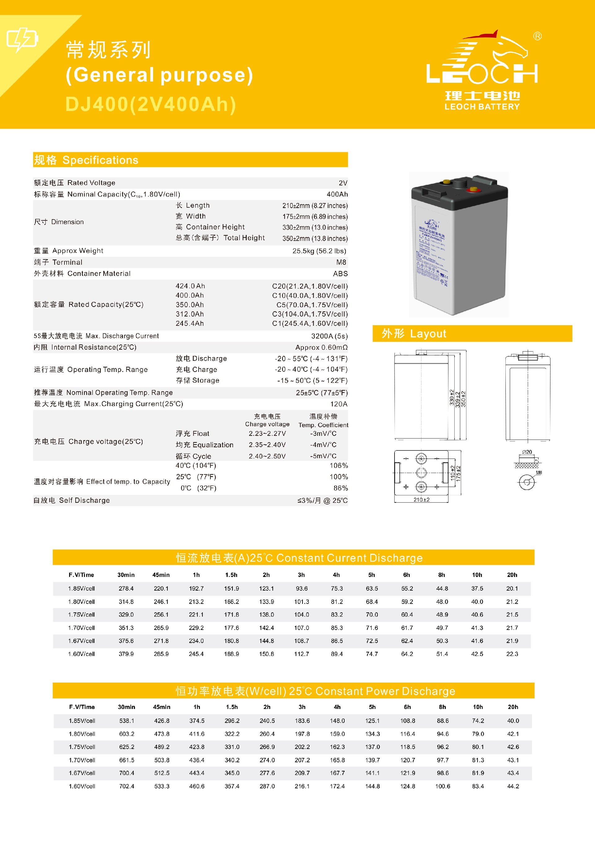 25℃下,设计浮充寿命可达16年。特殊的排气结构和密封技术,使用安全可靠,安装灵活,维护便捷。符合IEC60896,GB/T19638,YD/T799和DL/T637标准。UL认证,泰尔认证,CE认证