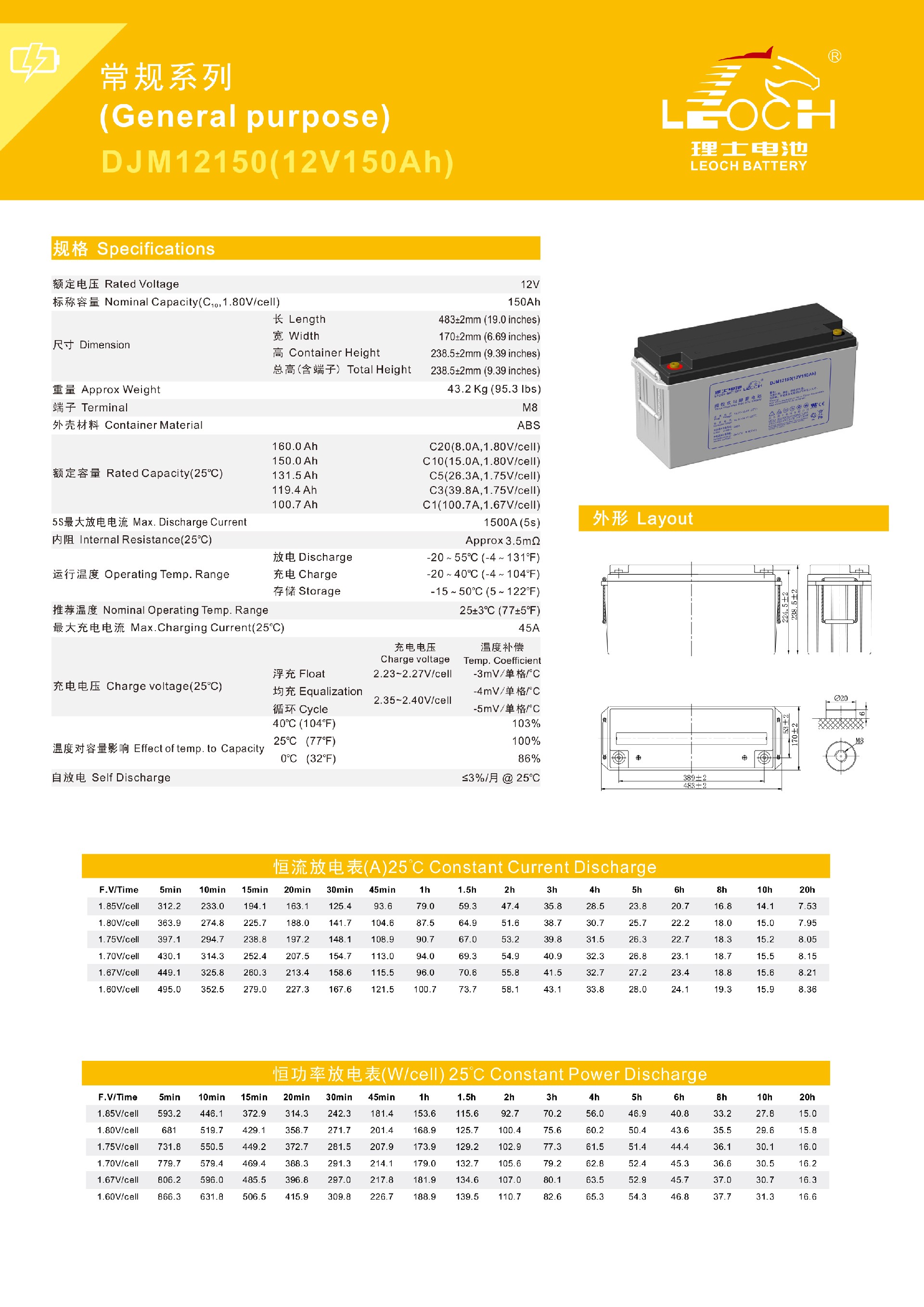 理士蓄电池DJM12V150AH